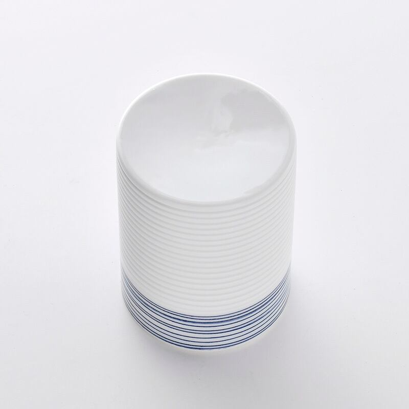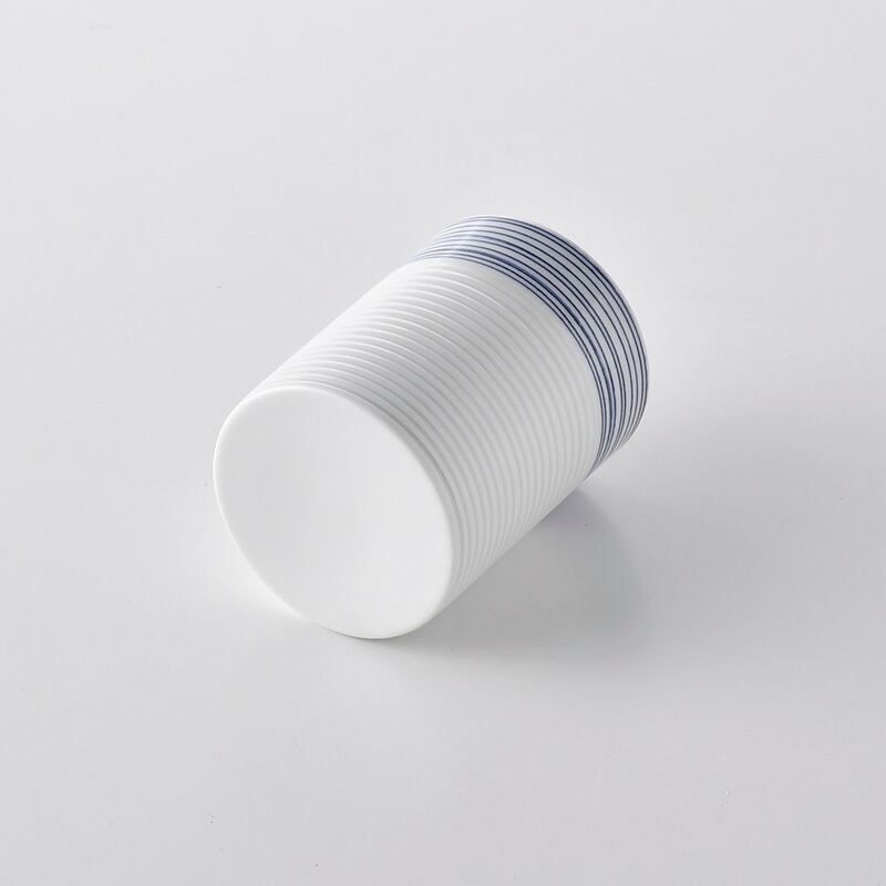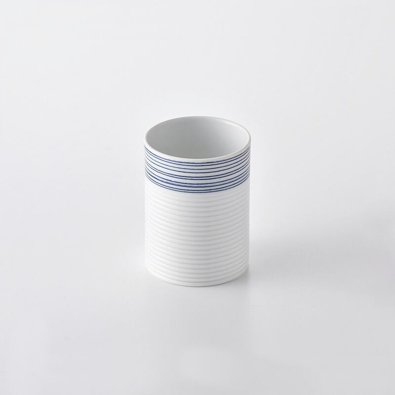カップだけど用途はさまざま なんにでも使えるフリーカップはいかがでしょうか 飲み物用にはもちろん、ペン立てにも使えます 「今日はどのカップを使おうかな」と考え 食器棚を開けたとき、つい手がのびる一品です シンプルで持ちやすいように 溝の幅に変化をつけ彫ってあります 底面にも釉薬をかけていますのでテーブルに傷つけません